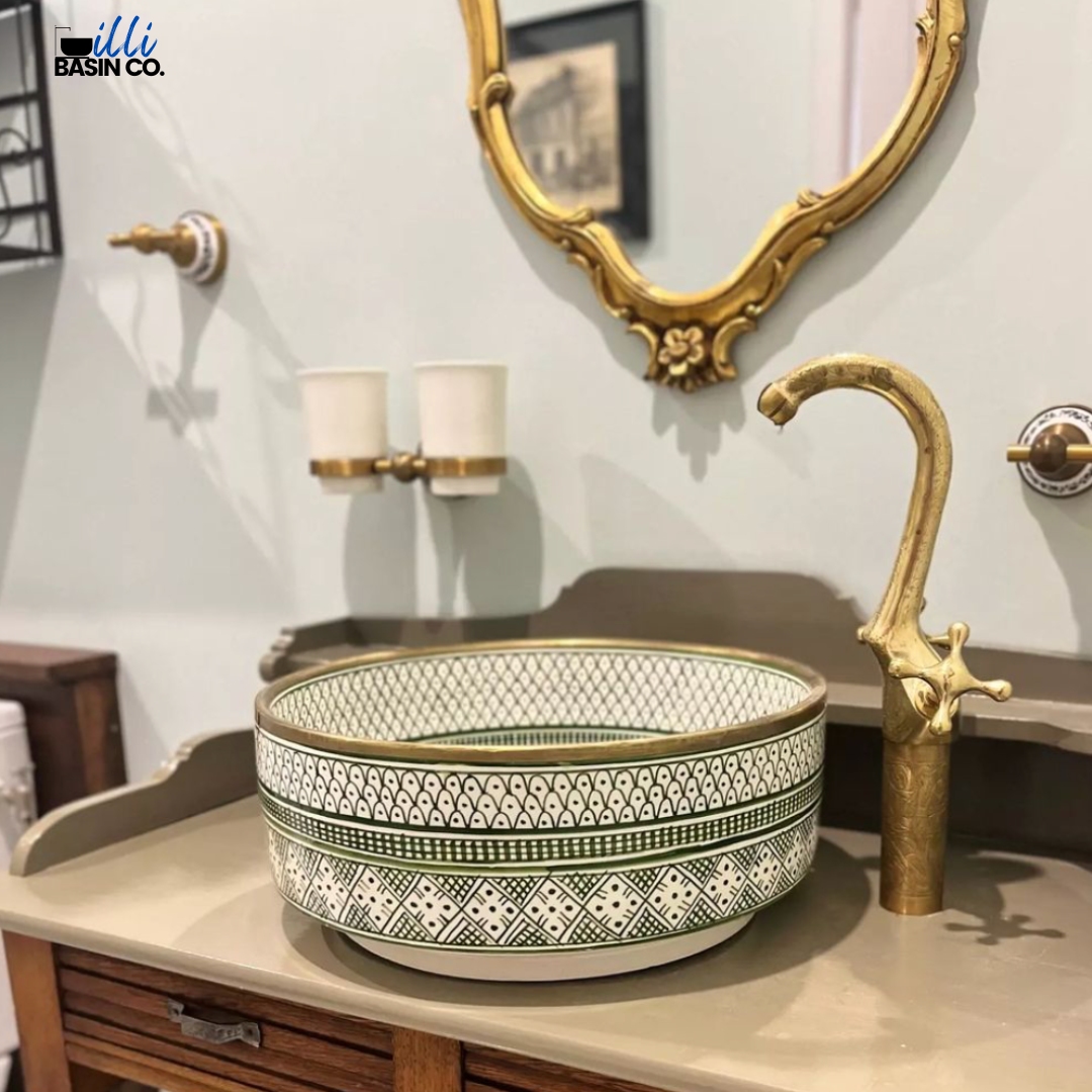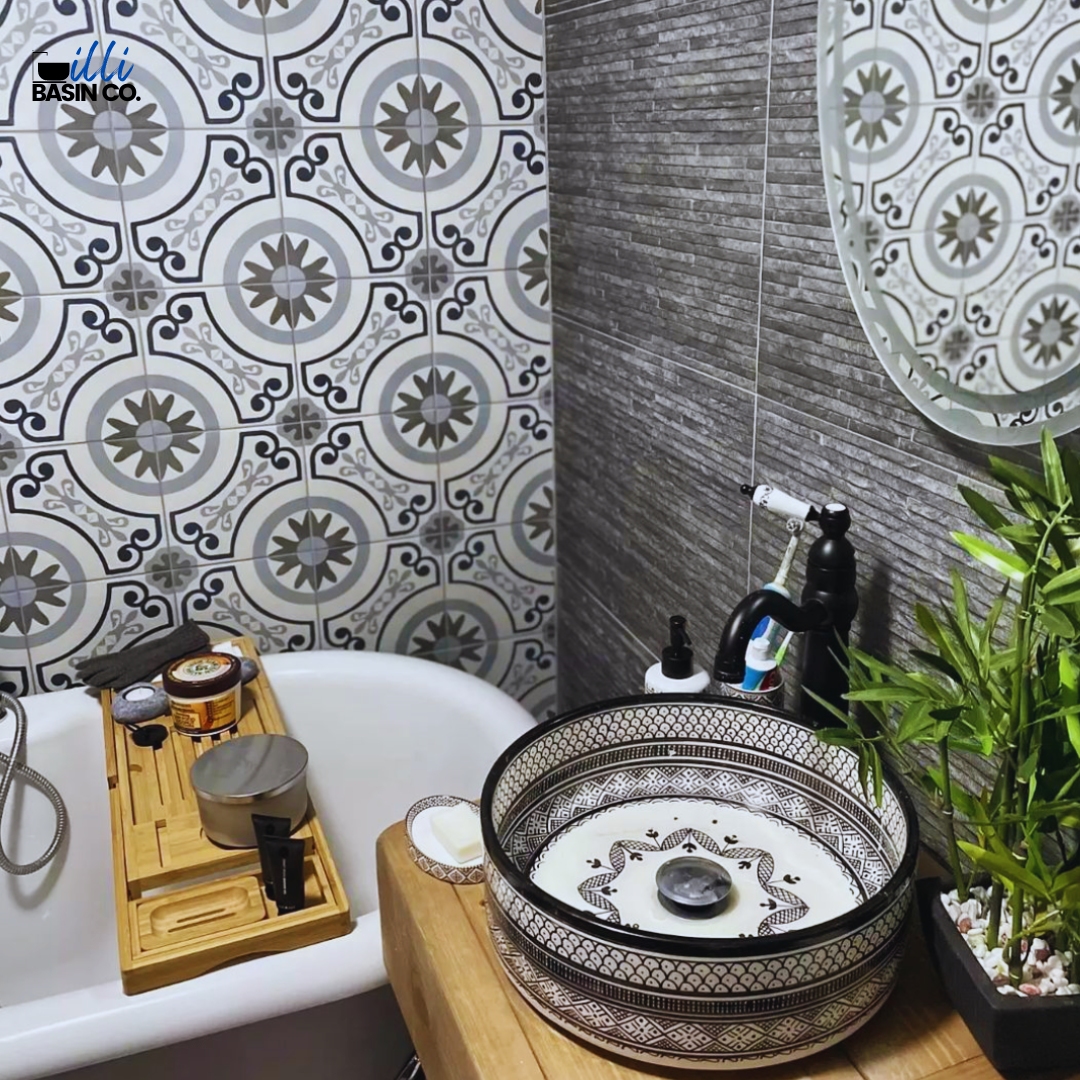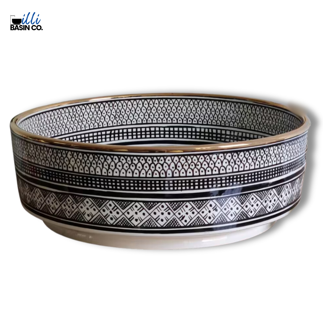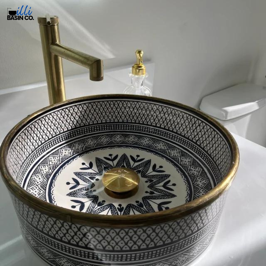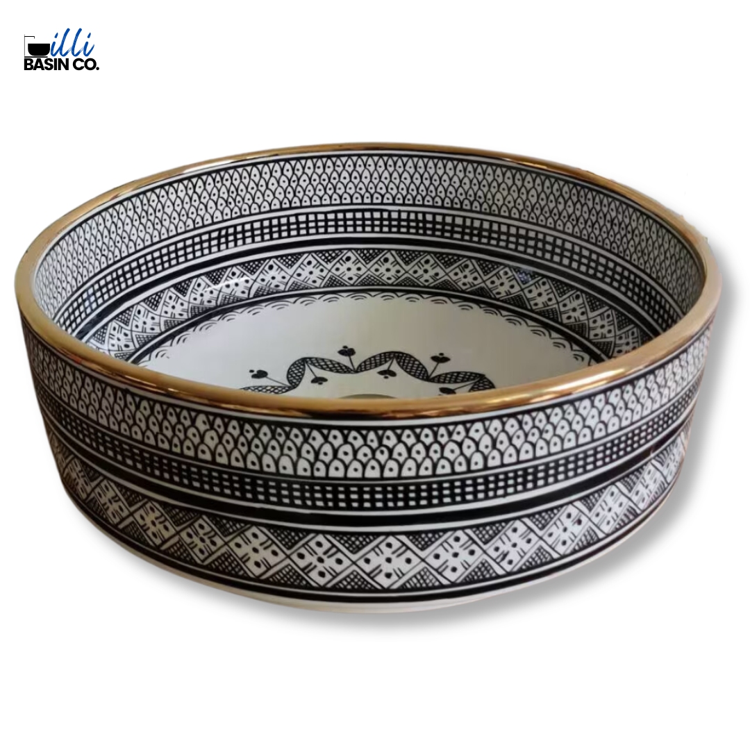 Discover the allure of our Beehive countertop cylindric basin, meticulously crafted by skilled Moroccan artisans. Inspired by Morocco’s vibrant nature, its elegant cylindrical design boasts mesmerizing hues of black, blue, and green against a radiant White canvas. Choose from our sophisticated Black variant and customize the basin’s shape, dimension, and color to fit your unique vision. Elevate your space with the artistry and heritage of Moroccan craftsmanship embodied in our versatile Beehive basin.